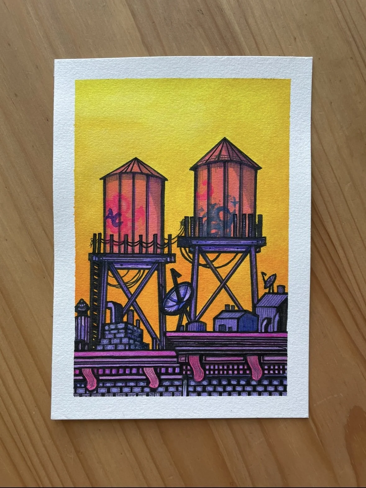 Shop › Double Watertower -Original 5”x 7” Image 1 of 2 Image 2 of 2 Double Watertower -Original 5”x 7” $50.00 Original watercolor painting - 5”x 7” on 140 lb. 300g/m cold-pressed watercolor paper. Add To Cart Added! Original watercolor painting - 5”x 7” on 140 lb. 300g/m cold-pressed watercolor paper.